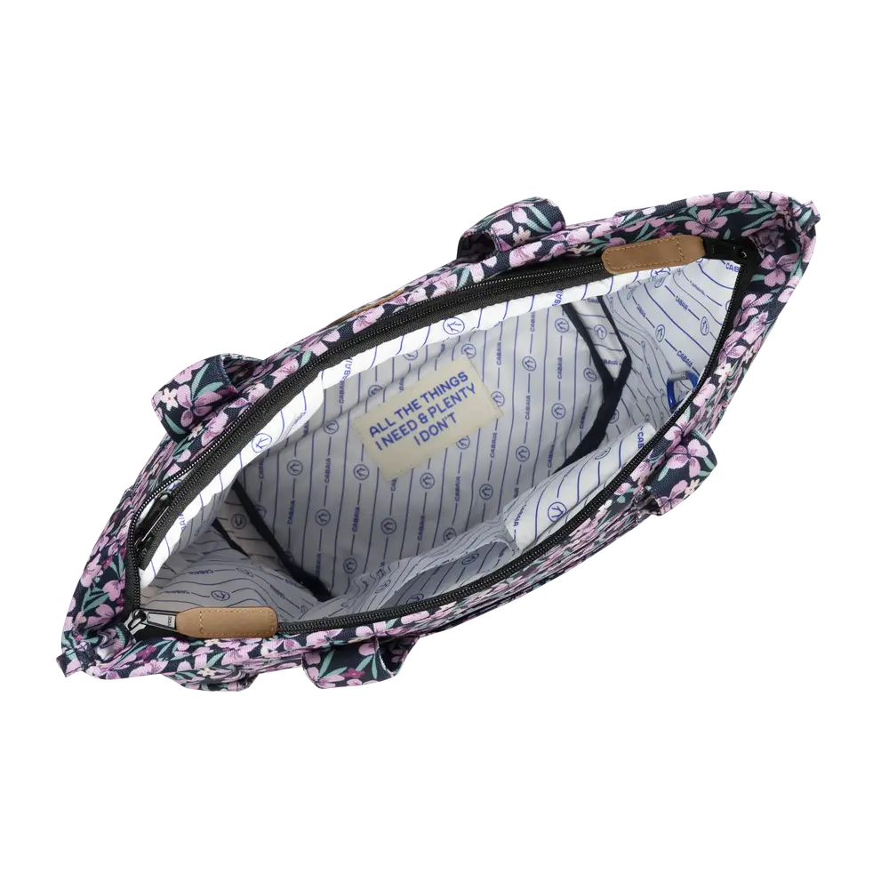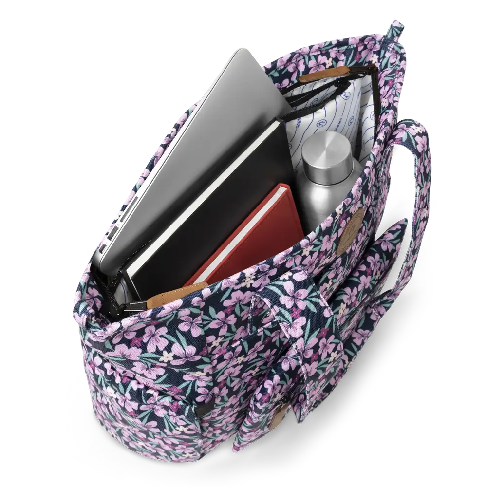 Le Tote Bag Cabaia Adventurer Cagliari en violet à motif floral célèbre la créativité et la féminité affirmée : 19 litres de capacité, compartiment PC 14 pouces sécurisé, pochette Cagliari aux mêmes motifs floraux, système MOLLE personnalisable, et garantie à vie. Ce tote bag vegan et déperlant aux imprimés botaniques accompagne les esprits créatifs et bohèmes. Parcourez les créations colorées Cabaia et notre gamme de tote bags aux motifs originaux.