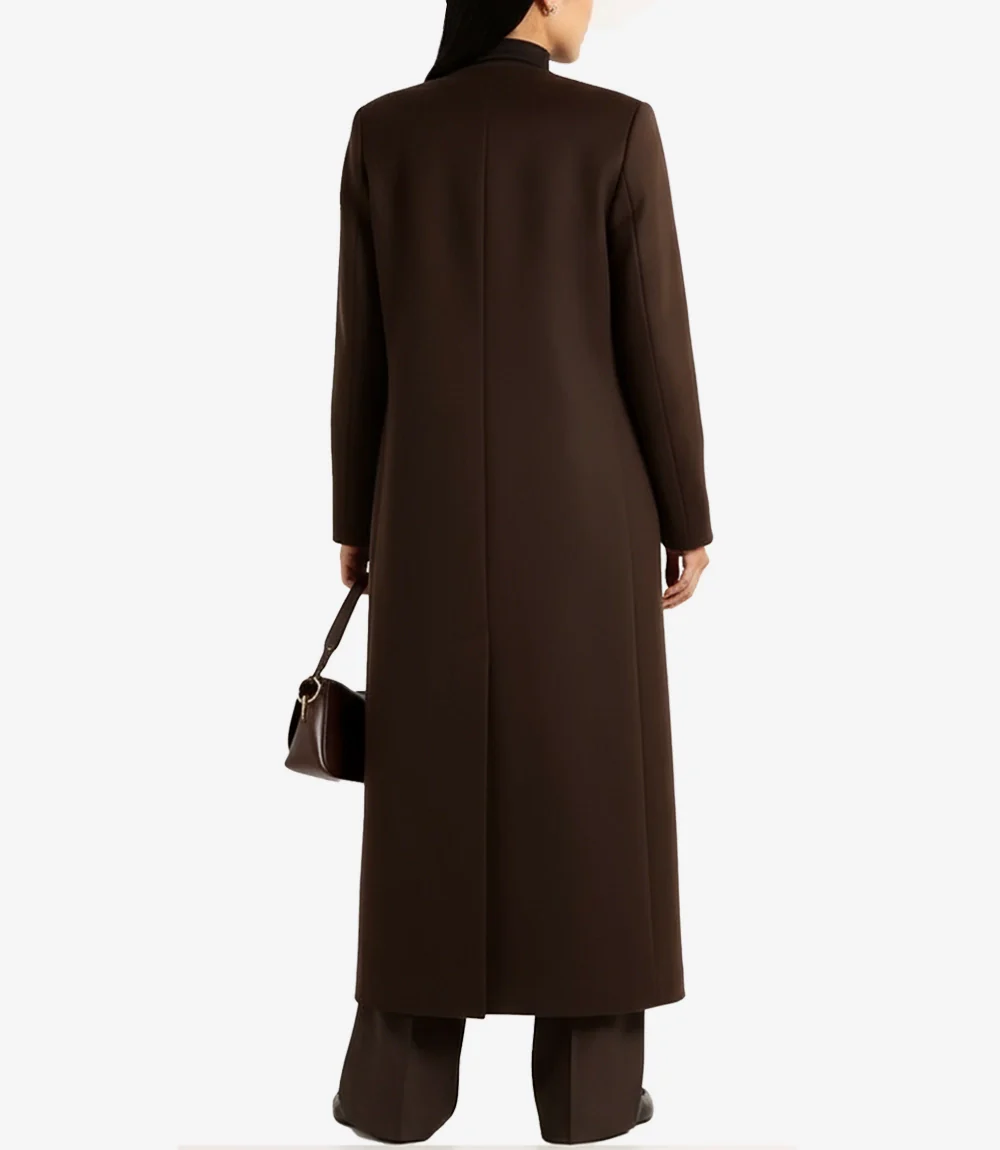 Trench-coat en laine marron chocolat sans col Rosario pour femme
