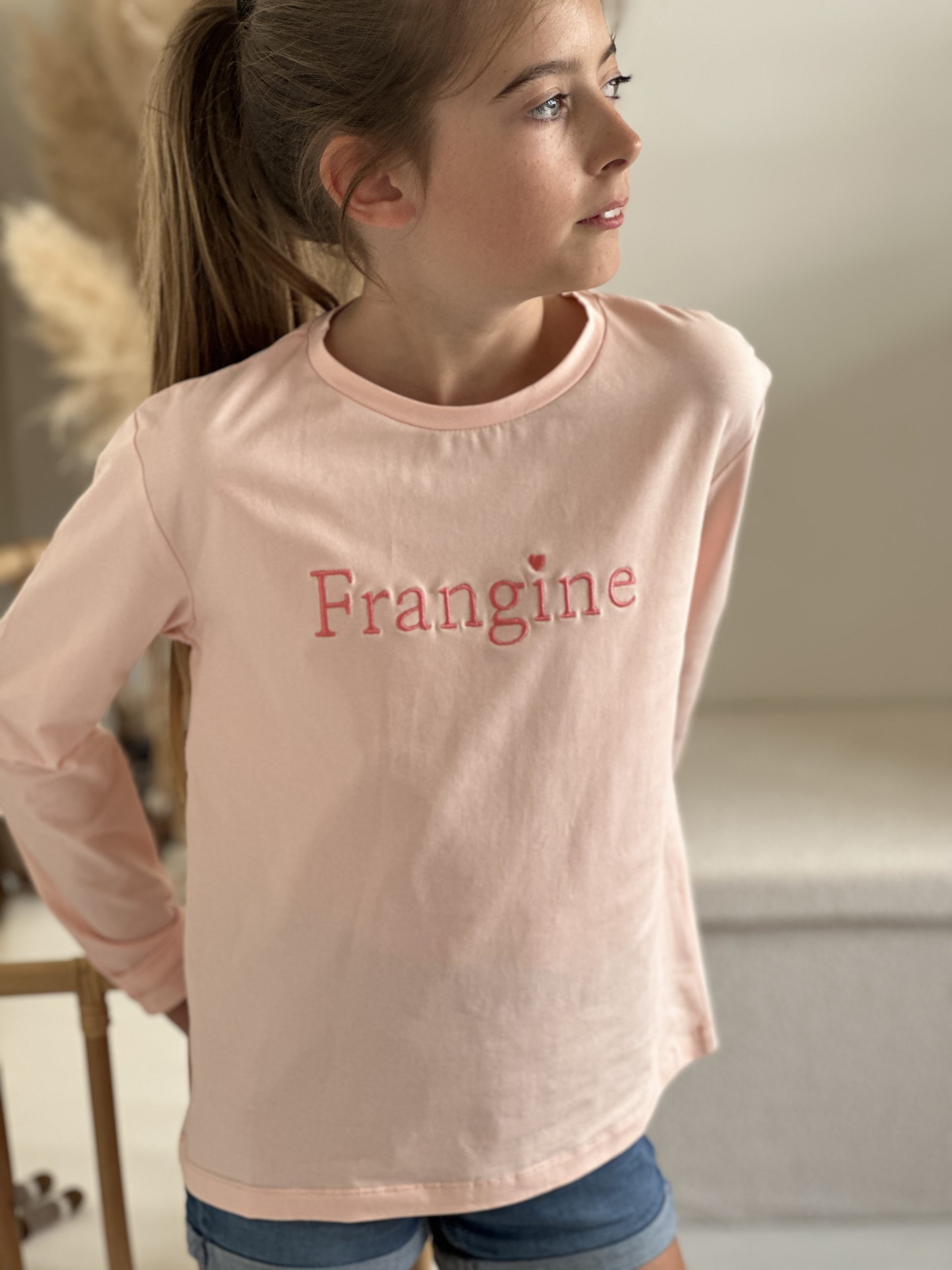 Tshirt à manches longues FRANGINE Coloris : Rose pale & fuchsia Broderie » frangine » rode Coupe loose TAILLE GRAND Composition : 100% coton Le modèle porte du 10 ans et mesure 1m29
