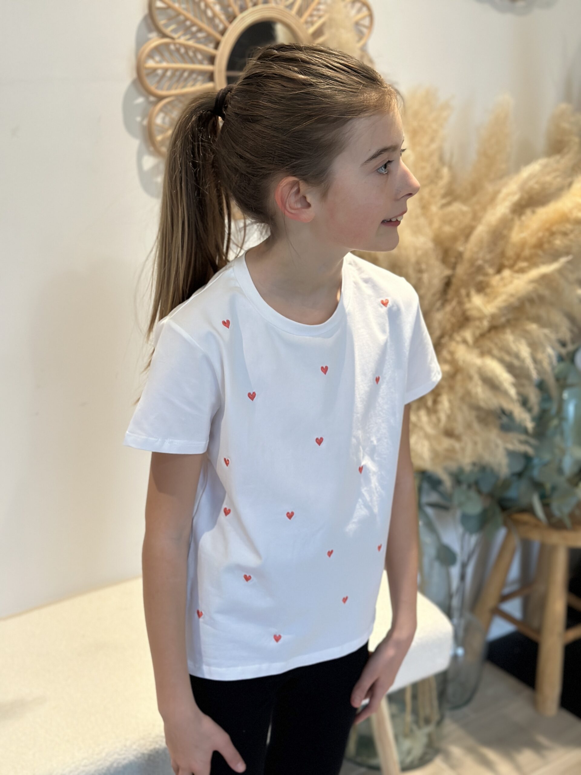 Tshirt COEUR Kids – Blanc & rose Coloris : Blanc & rose Coeur rose Manches courtes Coupe loose Taille grand Composition : 95% coton et 5% spandex Le modèle porte du 10 ans et mesure 1m29