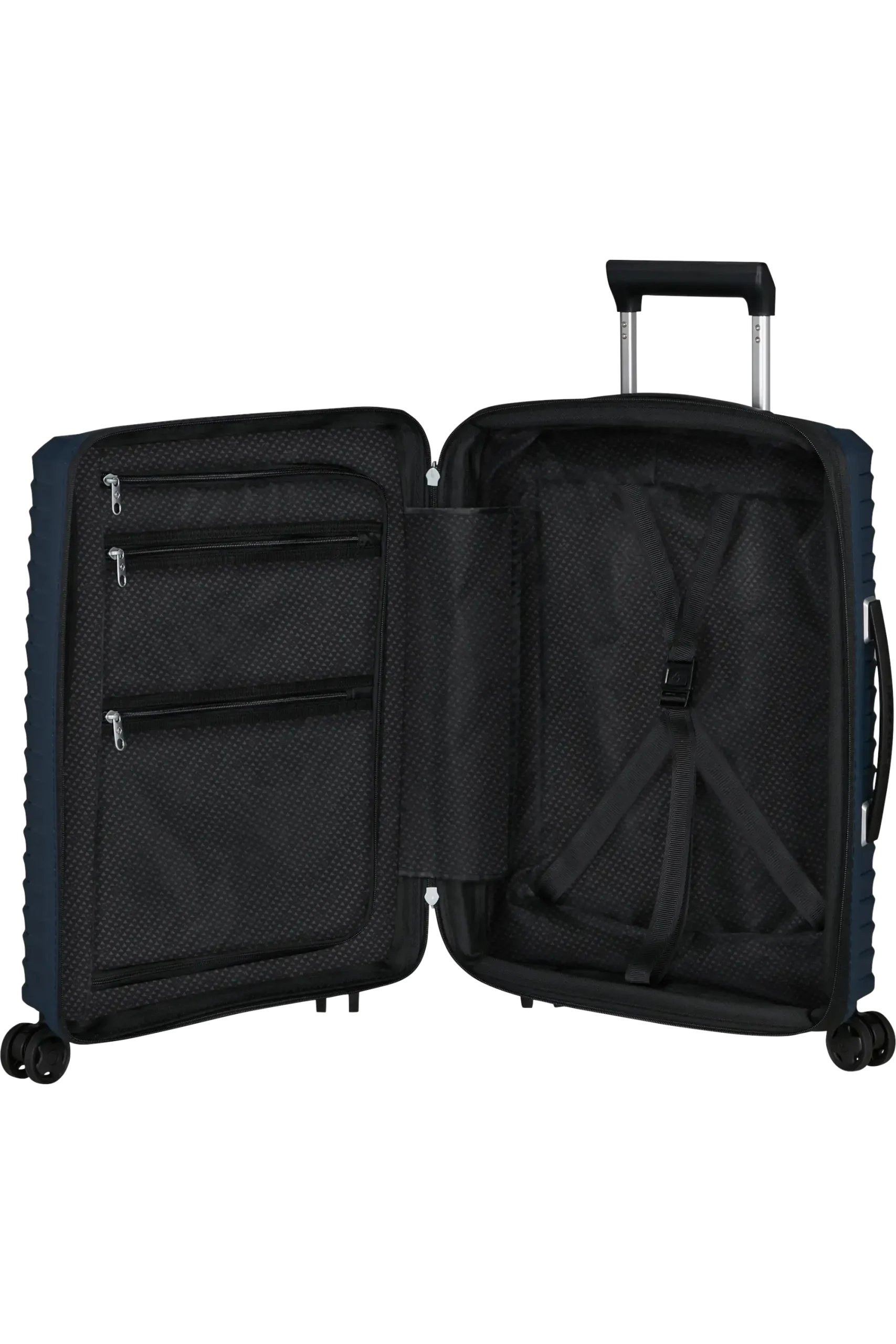 La valise cabine Samsonite « Upscape » combine légèreté, durabilité et praticité pour vos déplacements. Conçue en **Polypropylène**, elle garantit une excellente résistance tout en restant légère. Son format cabine extensible (55 x 40 x 20 cm / 55 x 40 x 23 cm) permet un volume modulable de **39 à 45 L** pour optimiser votre rangement.