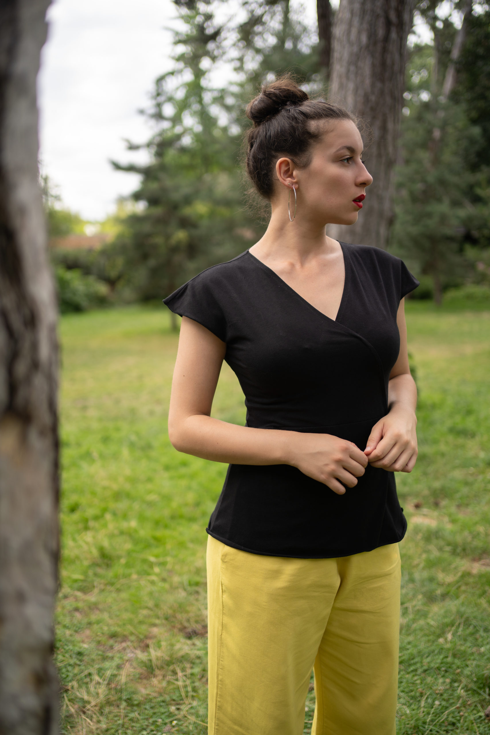 Un haut noir profond très féminin à la ligne cintrée et travaillée ! A assortir facilement avec une jupe ou un pantalon Un sublime décolleté cache-cœur croisé piqué très féminin De très belles petites manches sans couture à la coupe légère et dansante Une taille marquée par une découpe ceinture, toujours confortable grâce à l’élasthanne […]