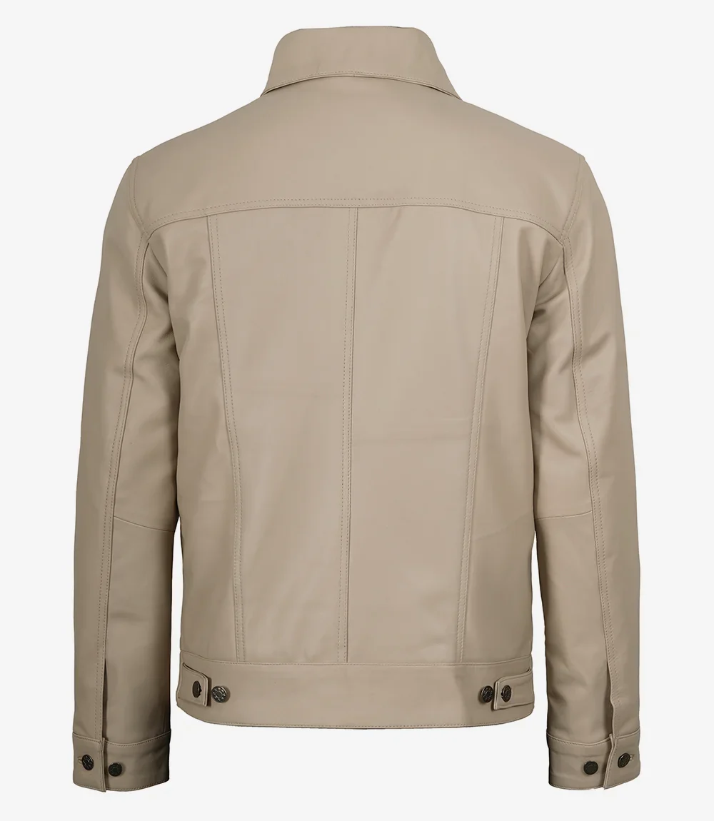 Veste de camionneur beige en cuir d’agneau véritable pour homme