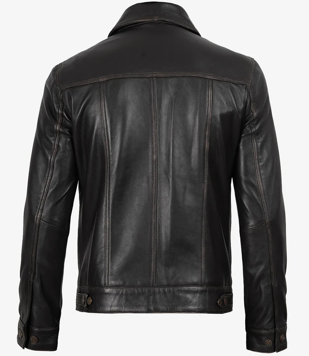 Blazer en cuir noir à deux boutons pour homme – Revers cranté
