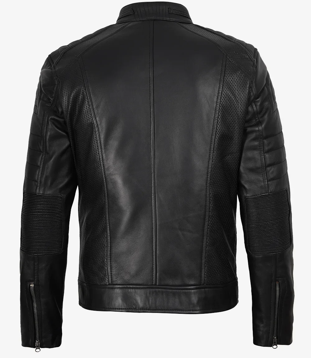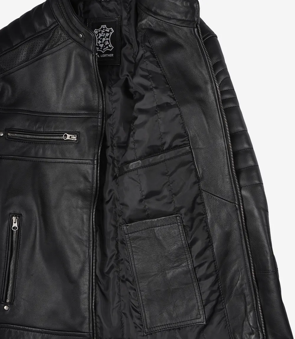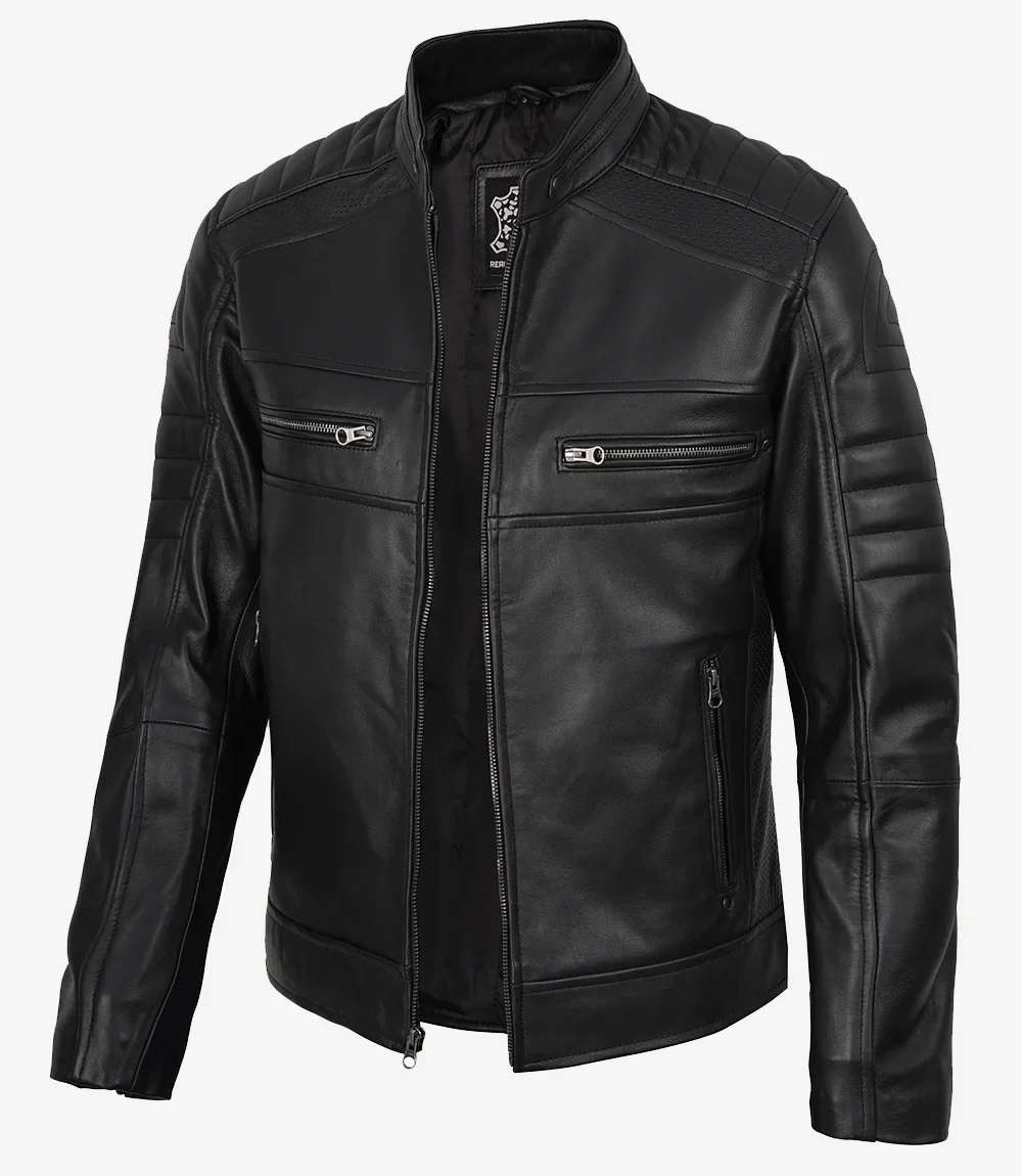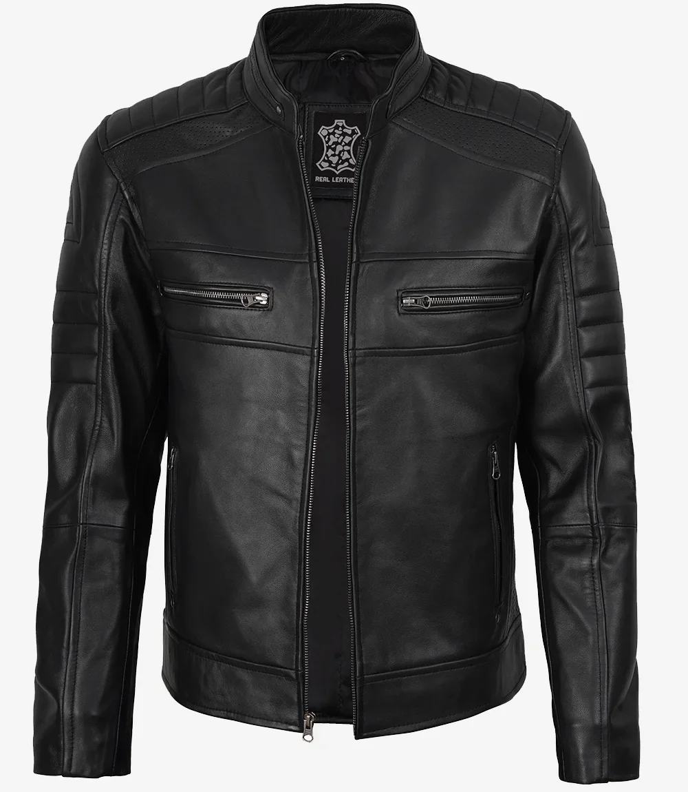 Veste de motard noire en cuir d’agneau véritable pour homme