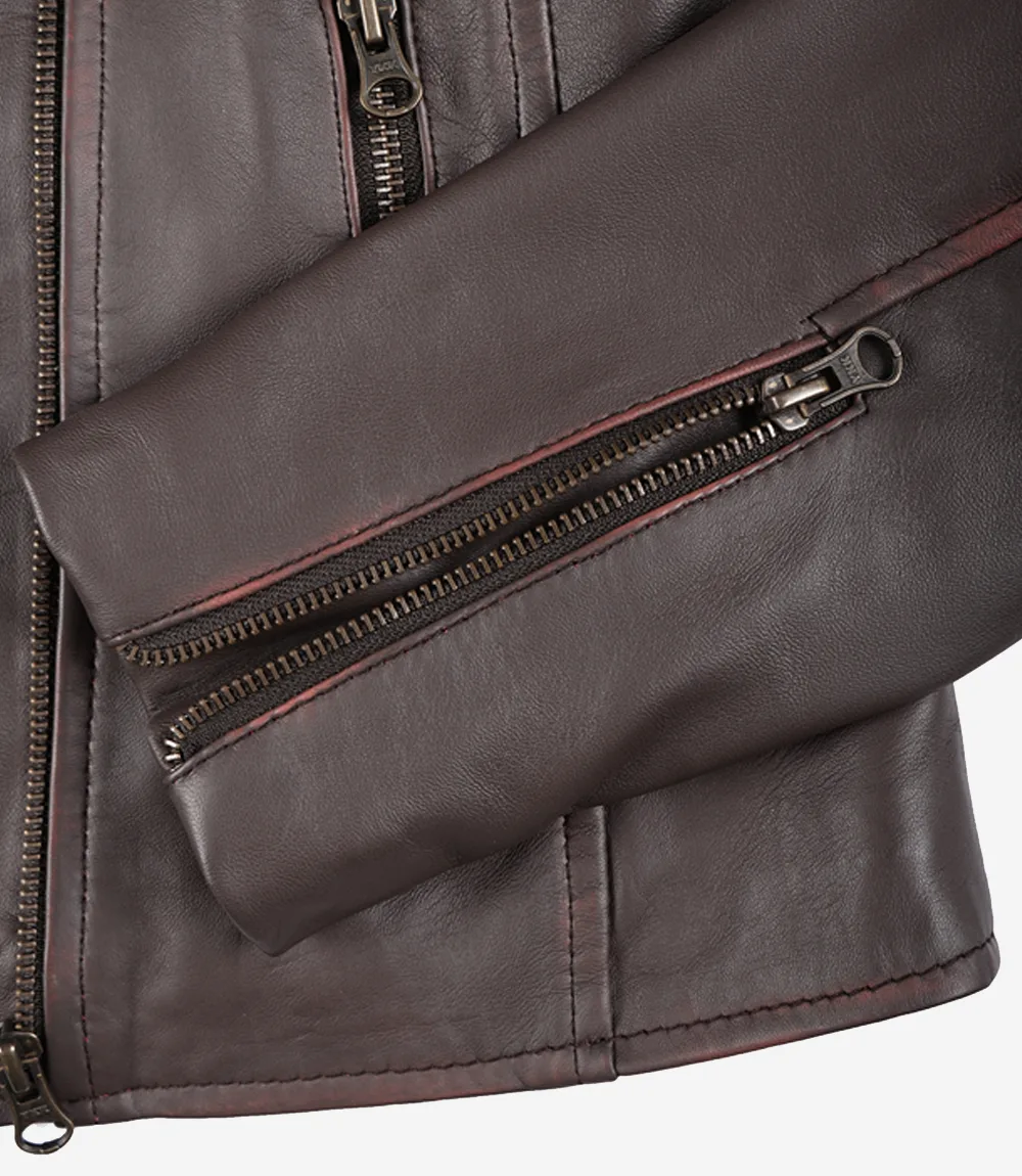 Veste en cuir marron vieilli style motard pour homme
