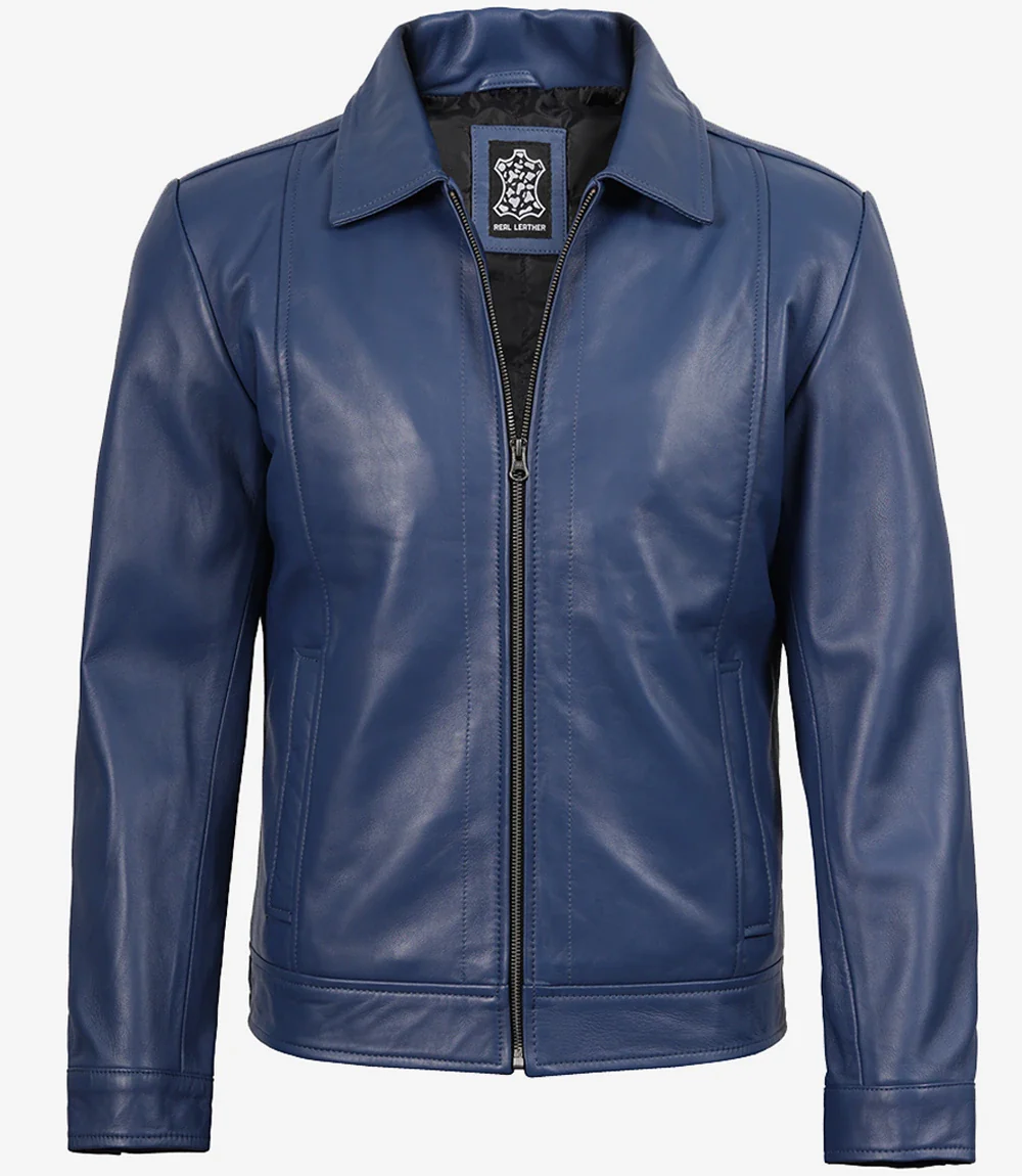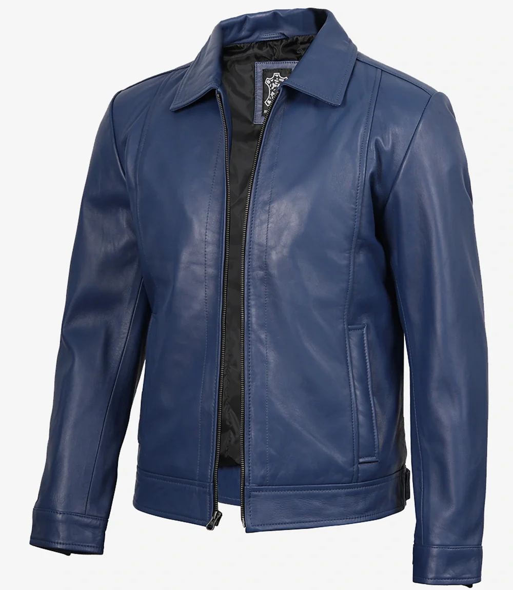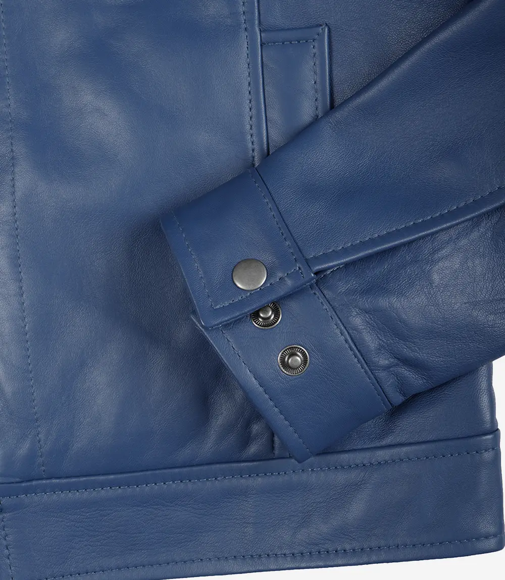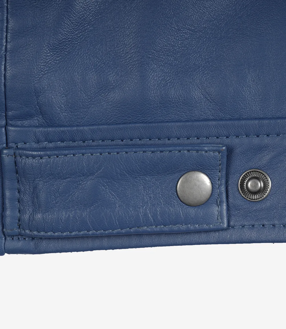 Trouvez le compagnon idéal pour vos trajets quotidiens avec cette veste en cuir bleu. Confectionnée en cuir d’agneau véritable, elle est entièrement doublée de polyester doux.