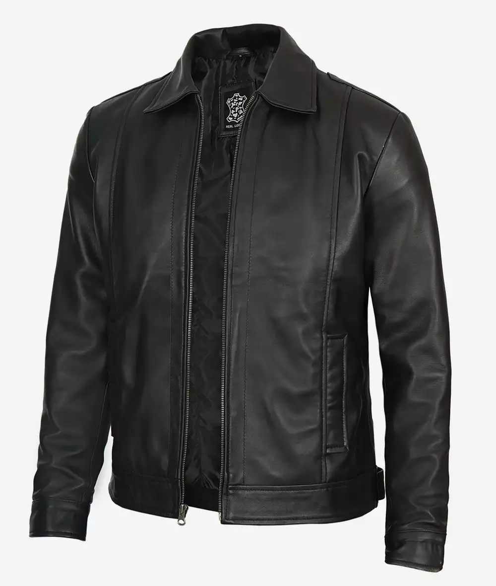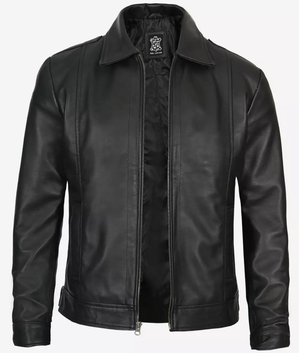 La veste en cuir noir pour les grandes tailles comporte deux poches latérales, deux poches intérieures, une fermeture zippée sur le devant et un col style chemise audacieux.