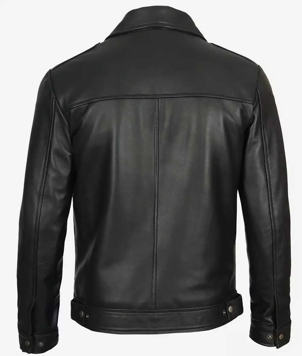 Trouvez le compagnon idéal pour vos trajets quotidiens avec cette veste haute en cuir noir classique et minimaliste. Confectionnée en cuir d’agneau véritable, elle est entièrement doublée de viscose douce.