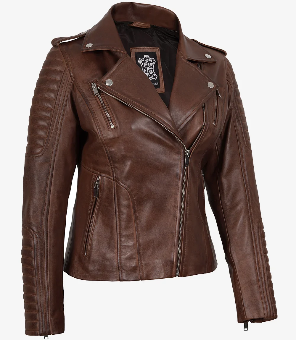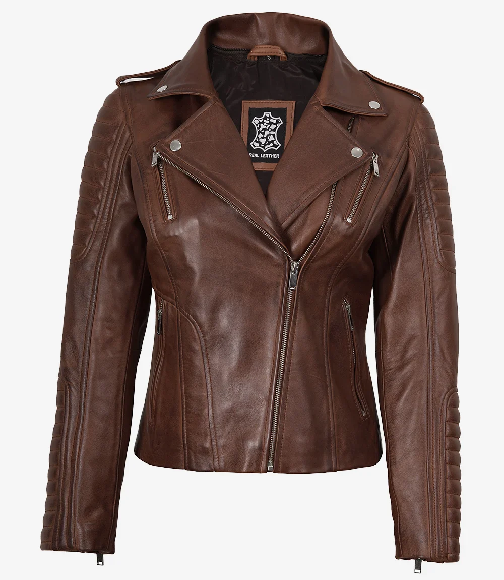 Cette veste en cuir asymétrique cognac pour femme, dotée d’une capuche amovible, est un excellent choix pour toute la saison. Fabriquée en cuir d’agneau véritable, elle est durable et confortable pour les femmes qui aiment marcher ou randonner en plein air.
