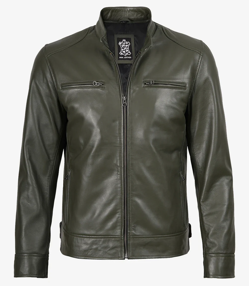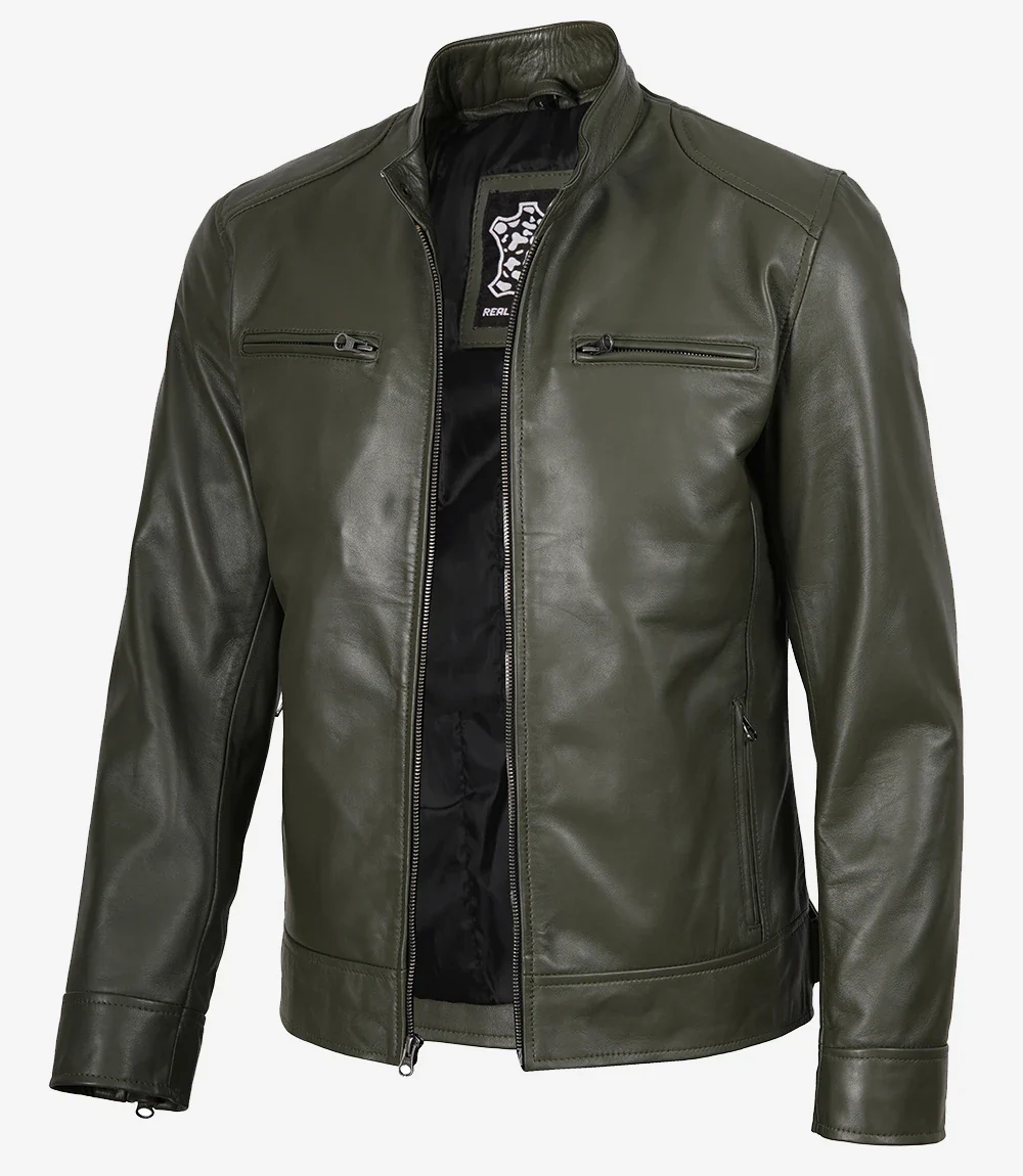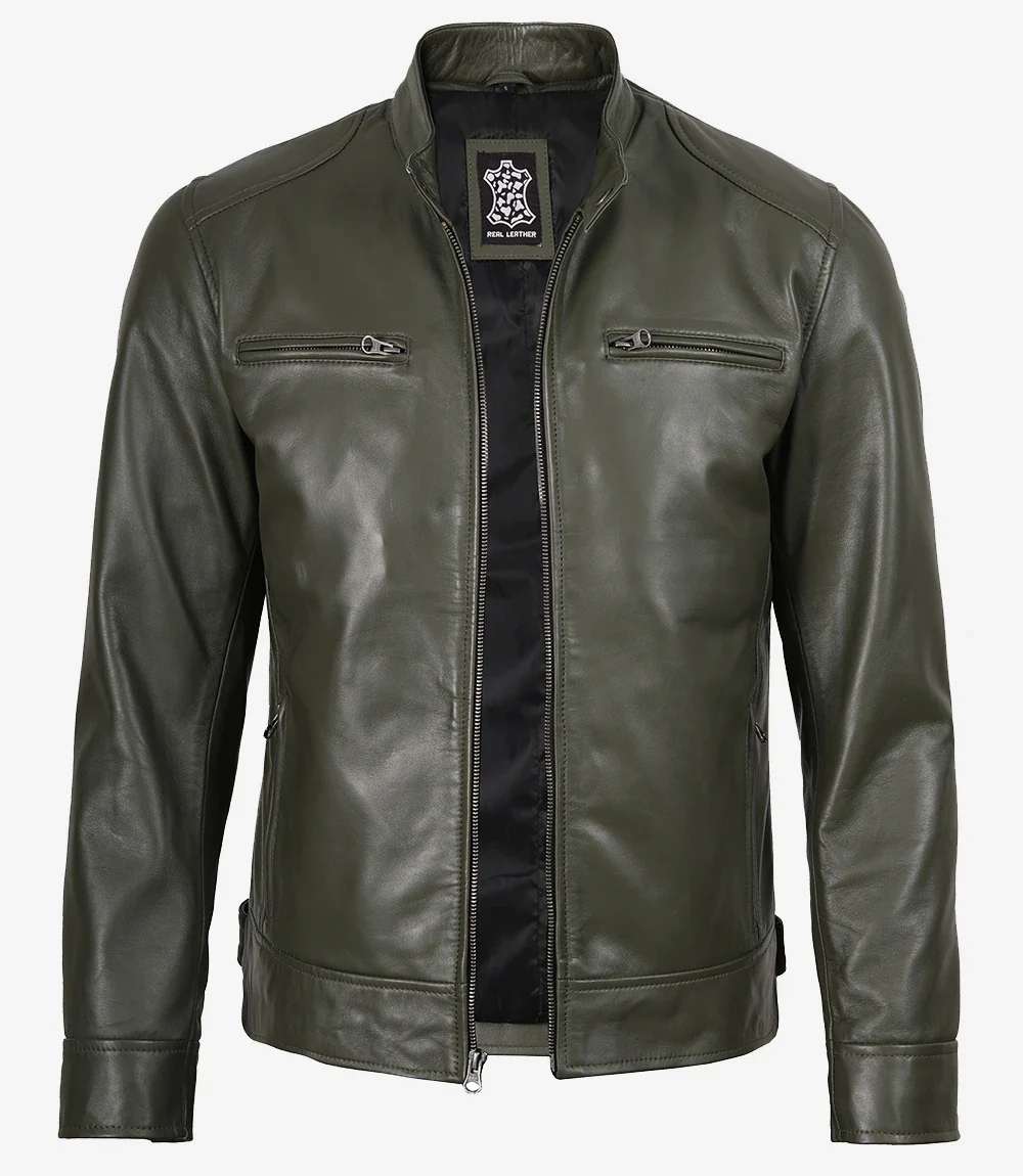 Veste en cuir style motard vert olive Dodge pour homme