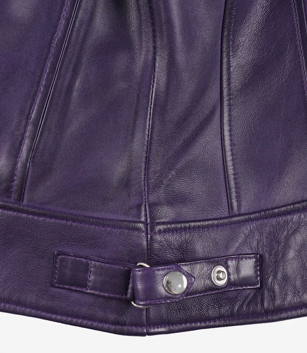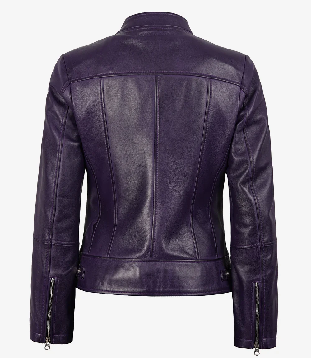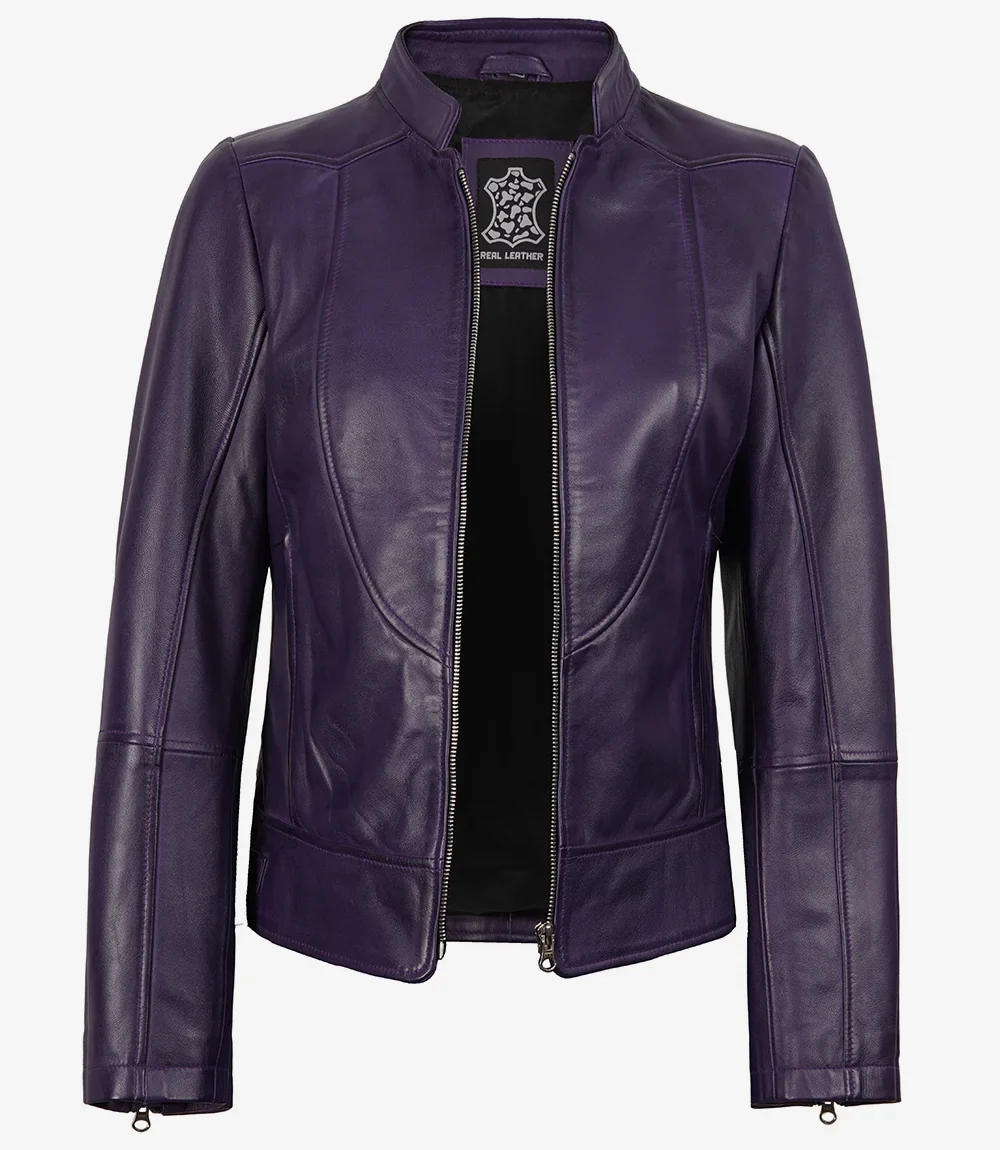 Cette veste violette, entièrement doublée et entièrement en cuir, fera tourner les têtes où que vous alliez. Avec sa touche de couleur et son col montant, cette silhouette sublimera votre tenue du quotidien.