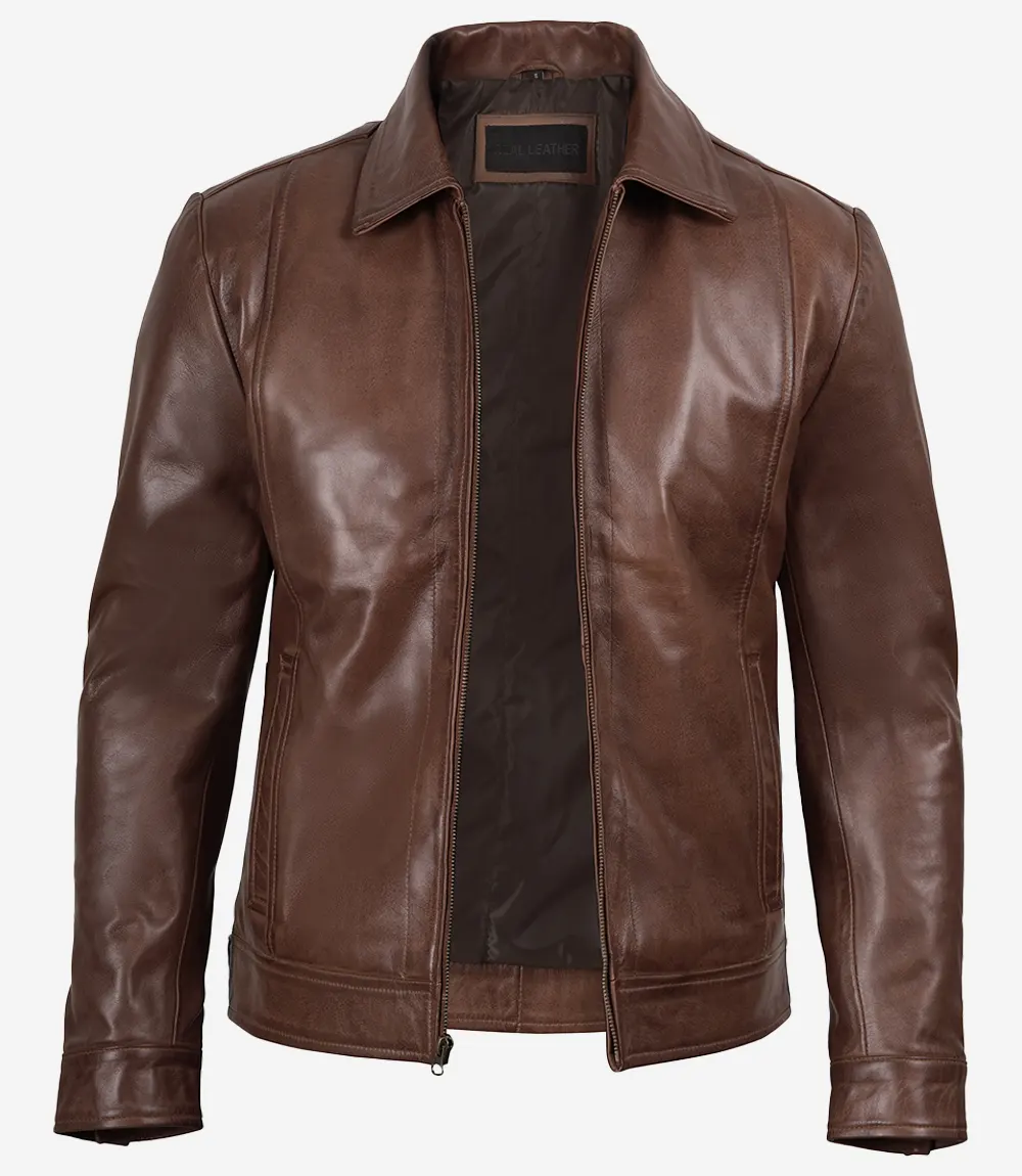 Veste en cuir véritable Reeves Harrington Cognac pour homme