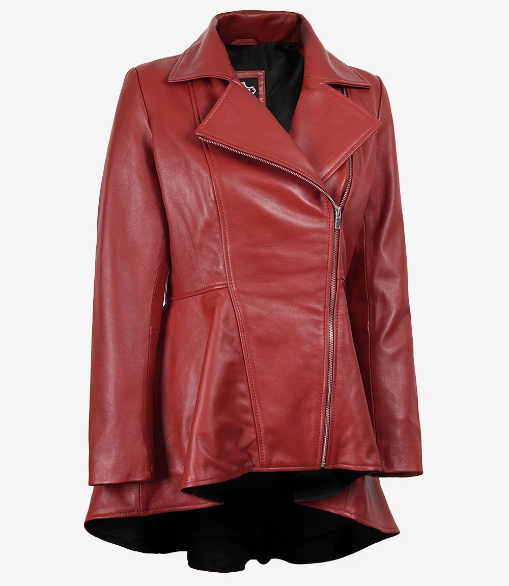 Affichez votre style avec cette veste péplum en cuir rouge pour femme. Conçue pour une coupe flatteuse, sa silhouette péplum ajoute une touche de féminité à son cuir audacieux. Parfaite à superposer à vos tenues préférées, cette veste allie style et élégance en toute occasion.
