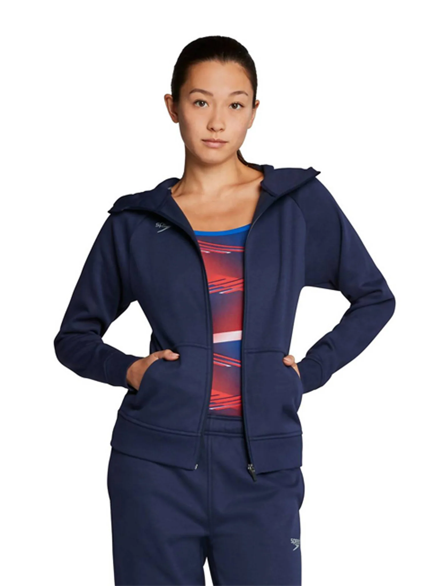 La veste Speedo Female Team Jacket est la veste zippée parfaite pour se réchauffer entre les épreuves. Le style à capuche est fabriqué à partir d’un tissu doux et dispose d’une doublure thermique brossée pour plus d’isolation et de confort.