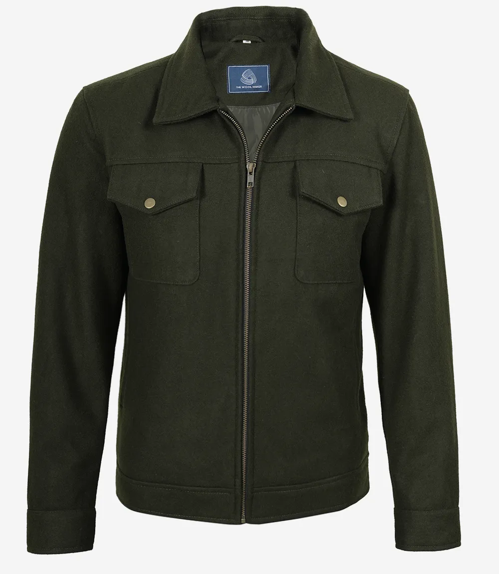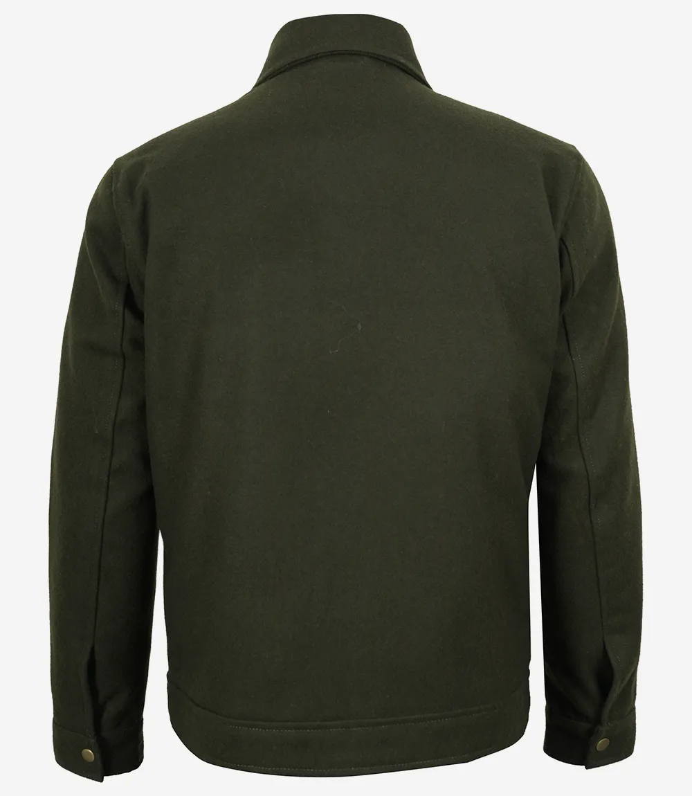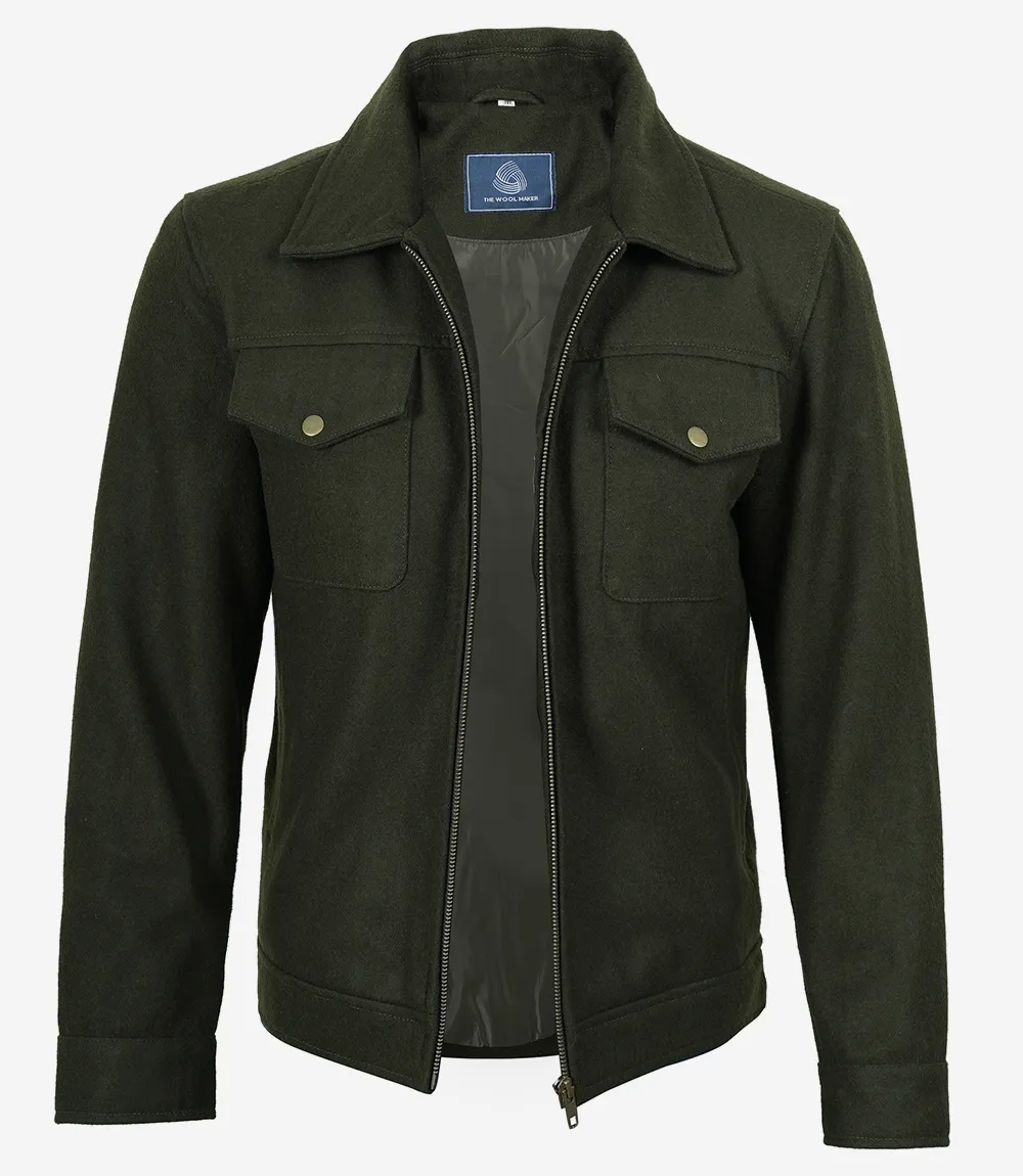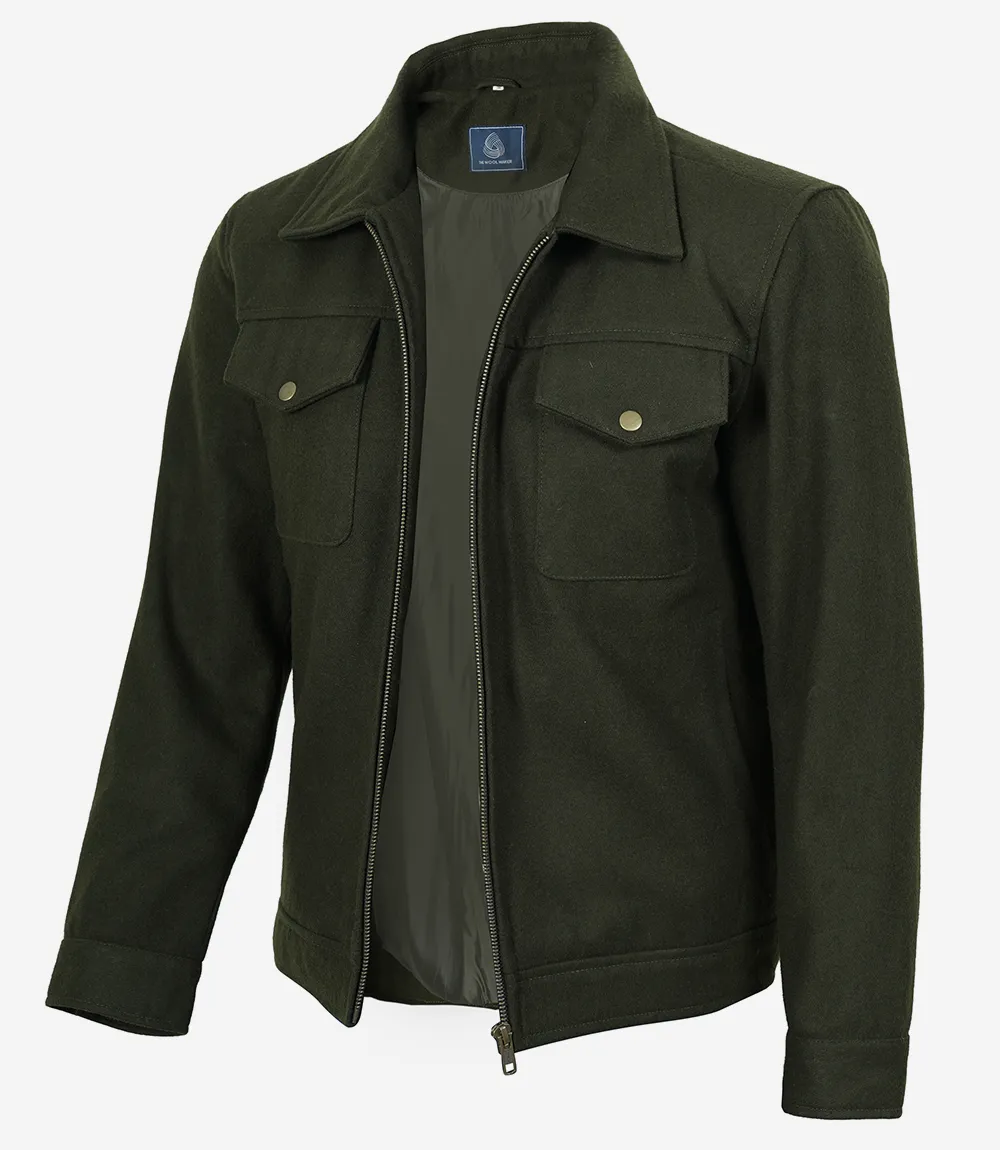 Veste utilitaire en laine vert olive pour homme – Fermeture zippée
